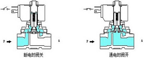 2、分布直動式電磁閥:它是一種直動式和先導式相結合的原理。常閉式---當入口與出口沒有壓差時,通電后電磁力直接打開先導孔連接主閥活塞依次向上提起,閥門打開;當入口與出口達到啟動壓差時,通電后,電磁力先打開先導孔,主閥活塞上腔壓力下降,從而利用壓差和電磁力拉動主活塞,閥口打開;斷電時,靠彈簧復位關閉先導孔,主活塞上腔增壓,推動主活塞向下移動,閥關閉。常開式與常閉式相反。