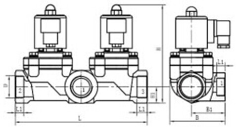 一進一出:常閉式:當線圈通電時,2通向1,1與3關閉;當線圈斷電時,2與1關閉,1通向3。